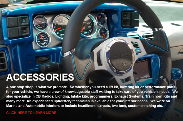 Creative Auto Boutique sells and installs car stereo equipment, wheels, accessories, custom paints cars, installs custom interiors in all types of autos and marine vehicles.